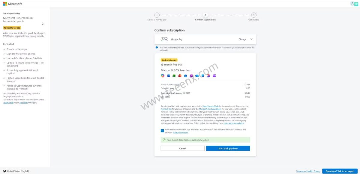 点击“Start trial pay later”,完成试用