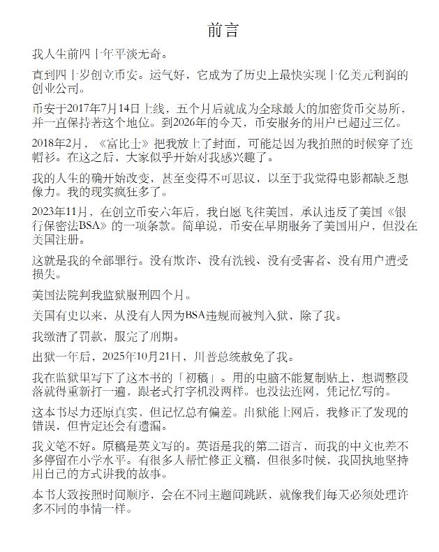 书是CZ在监狱里用共享电脑、每次仅15分钟断续写成的第一稿(前后花了约2年时间,包括后期编辑)。目前已在部分国家上线(4月8日全球同步发售),所有销售收益全部捐慈善。书名“Freedom of Money”源自Binance创立初期的核心使命(增加货币的自由度),并非单纯追求利润。